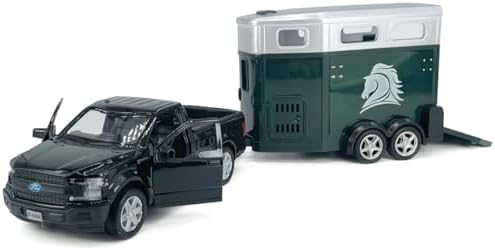 F-150 Pickup Truck Trailer Towing Horse Transporter Farm Trailers, Doors Open, 1/36 Scale Model Car Diecast Metal Toy Cars, 3 4 5 6 7 Year Old Kids Boys Gifts, Cake Topper Home Office Décor Collection