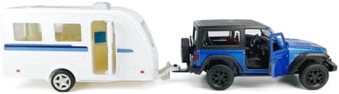 2 Doors Wrangler Rubicon SUV Model Car Trailer Towing Toy Camper RV Motorhome Toys for Boys, Doors Open, 1/36 Scale Diecast Metal Toy Cars, 3 4 5 6 7 Year Old Kids Gifts Cake Topper Home Office Decor