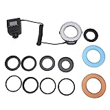 WIDELY USED: The LED Flash Light is designed for many different occasion in the field of macro scientific research, and photography in a very close distance 48 MACRO LED LIGHT: flash consists of 48 leds with higher luminance and lower static power consumption, present the outstanding color rendering, the output of this macro flash light with true to life color rendering FLASH WITH LCD DISPLAY: The flash comes with a LCD Display, which is easy to use the flash light even in the dark. It features 4 lighting modes along with the 7 level brightness adjustments to meet your different higher photography requirements. FLASH LIGHT WITH ADAPTER RINGS FLASH DIFFUSER: 9 diameters of adapter rings for alternative use 40.5mm, 49mm, 52mm, 55mm, 58mm, 62mm, 67mm, 72mm, 77mm. 2 colors of flash diffusers for alternative use, blue and orange. WHAT YOU GET: 1 LED Macro flash light, 2pcs flash diffusers, 9pcs adapter rings. Suitable for most brands of DSLR cameras. Macro flash provides continuous and stable light for macro shots.