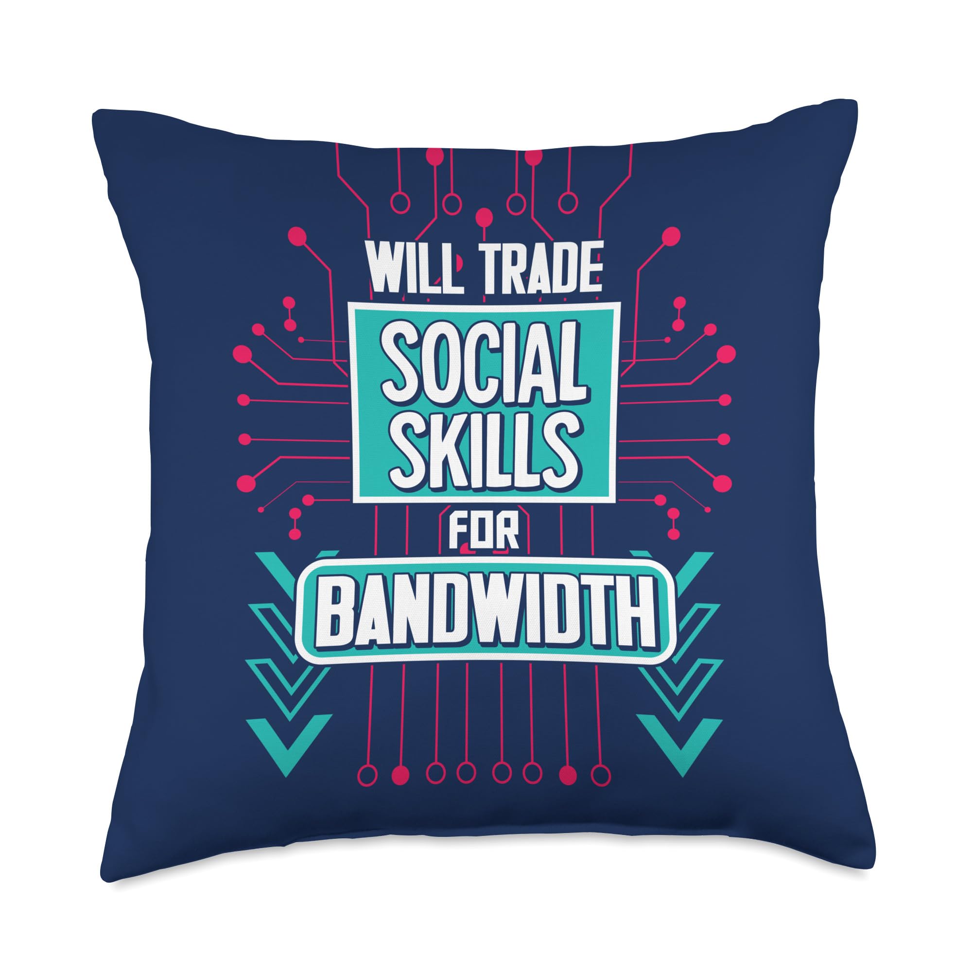 Will Trade Social Skills For Bandwidth Funny Coder Gamer Throw Pillow