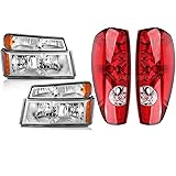 OE Style Tail Light Assembly & Headlights Combo for 2004-2012 Chevy Colorado/ 2004-2012 GMC Canyon Taillight Headlamp Replacement Assembly, Chrome Housing Amber Side Headlights