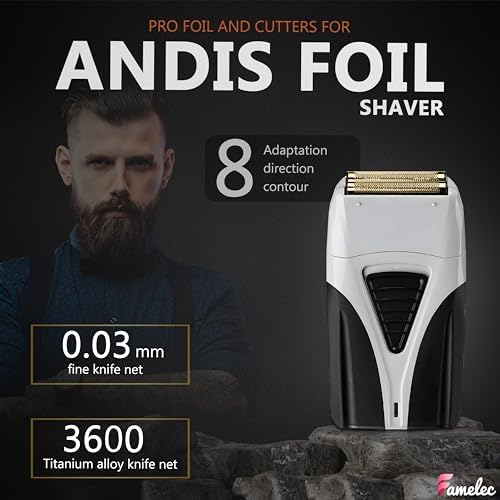 - ✔️ Premium Replacement for Andis Foil Shaver Models 17150(TS-1)/17155/17200/17170/ 17160. Compatible with Andis foil shaver replacement blades, FAMELEC offers high-quality replacement parts that fit Andis 17150 TS-1 Pro Foil Lithium Titanium Foil Shaver and Andis TS-2 Foil Shaver Replacement Blades. Crafted with hypoallergenic gold foil, it ensures irritation-free performance. Perfect for Andis resurge shaver replacement foil or Andis foil shavers for men, this product revitalizes your grooming routine with professional precision.