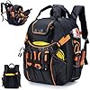 - 【Withstand Harsh Conditions】The heavy duty tool backpack is made of 1680D Oxford fabric, which has extremely strong tensile strength and wear resistance, while being high-density and waterproof. The tool backpack for men suitable for use on construction sites, cement and sandy areas, and also suitable for electricians, plumbers, repairmen or someone who needs to organize their tools.