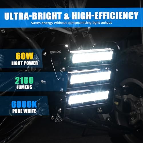 NICECNC 60W Front Bumper Protector with Headlight Kits Compatible with Yamaha Raptor 700 YFM700R 2014, Raptor 700 YFM700 2013 2015 2016 2017 2018-2024, Raptor 700R YFM700R 2013 2015-2024, See Fitments