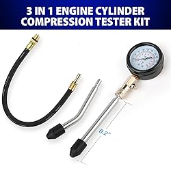 Reliable quality: Compression tester kit made of high-quality materials, and treated with rust and corrosion protection, sturty and durable enough. Large acrylic dial with rubber cover is convenient to read datas more accurately. Easy to Carry: Compression tester kit the handheld carrying case is made of high quality PVC, keeps all accessories in place and protects the gauges during storage and transportion. Professional Kit: Our cylinder compression tester kit is a professional tool to measure pressure on gasoline engine cylinder quickly and accurately. It is suitable for petrol engines on motorcycles, cars, trucks, ATVs, and any other vehicles. Pressure range: 0-300 psi, 0-20kg/cm². Complete Accessories: The cylinder pressure gauge Compression tester kit includes a cylinder compression gauge, 2 rubber cone ends, 4 Metal adapter, and 14" extension hose, meet all your practical needs. Satisfaction: We are responsible for every product. If you have any problems with our products or services, please contact us immediately and we will provide you with exceptional responses.