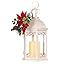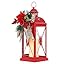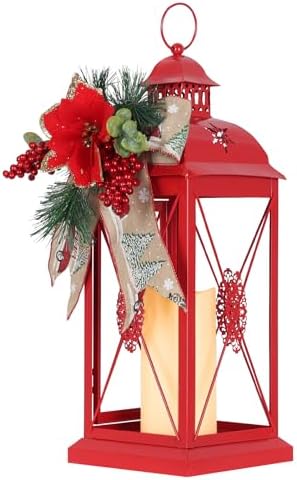 DECORKEY Christmas Decorations, 16” Metal Christmas Lantern with LED Candle and Floral Accents for Home Decor, Decorative Hanging Candle Holder Indoor Outdoor for Table Centerpieces, Porch, Patio