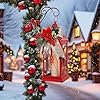 - ✨Exquisite Metal Candle Lantern - Each Christmas details used a vintage reproduction lantern as the starting point for a nature-inspired Christmas lantern decorated with the floral accent includes faux greenery branches, red berries, a poinsettia plants in full bloom, a bow with printed festive elements that complements the rustic indoor outdoor, front porch, patio decor. Perfect way to great your guests