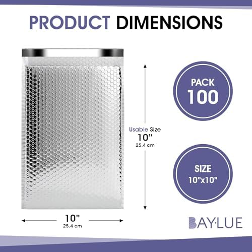 Thermal Bubble Mailer 10"x10" Inch - 100 Pack Bulk | Metallic Bubble Mailers | Insulated Mailers for Cold Shipping | Waterproof Thermal Foil Shipping Envelopes | Secure Cold Shipping Bags