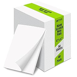 Better Office Products Blank Scratch Note Pads, 4" x 6" Pads, Server Notepads, 50 Sheets per Pad, Memo Pads, Gummed Binding for Easy Tear-off (48 Pack)