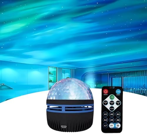 - Multi-color projection and music sync: With 14 color options for the Northern Lights effect, the projector is also synced with the music to create a dynamic atmosphere where the lights dance to the beat