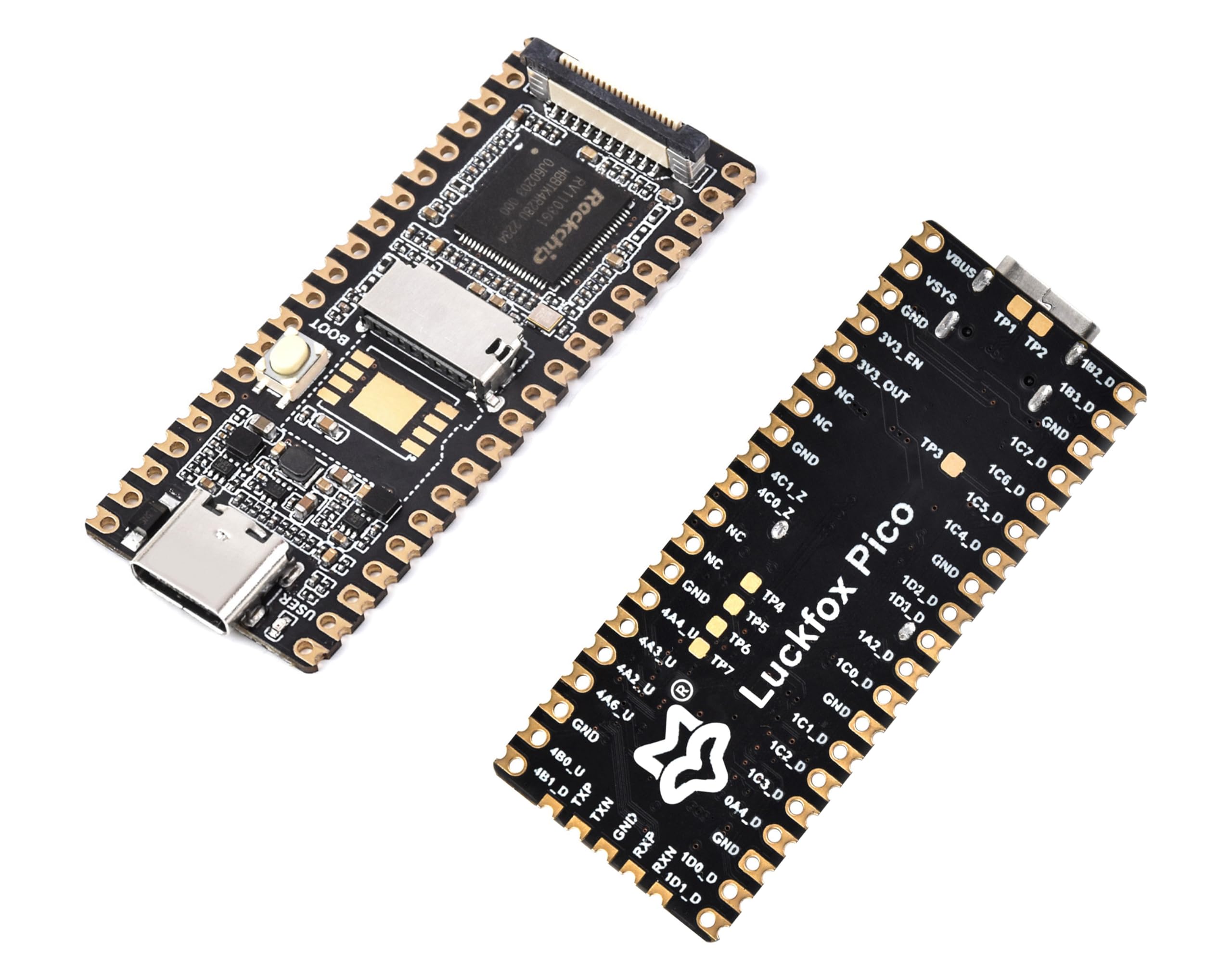 - Luckfox Pico Pro with Pre-Soldered Header (128MB Memory) is RV1106G2 Chip Linux Micro Development Board, integrates ARM Cortex-A7/RISC-V MCU/NPU/ISP Processors, with Rich Interfaces MIPI CSI/ GPIO/ UART/SPI/I2C/USB, etc, which is convenient for developing and debugging quickly.