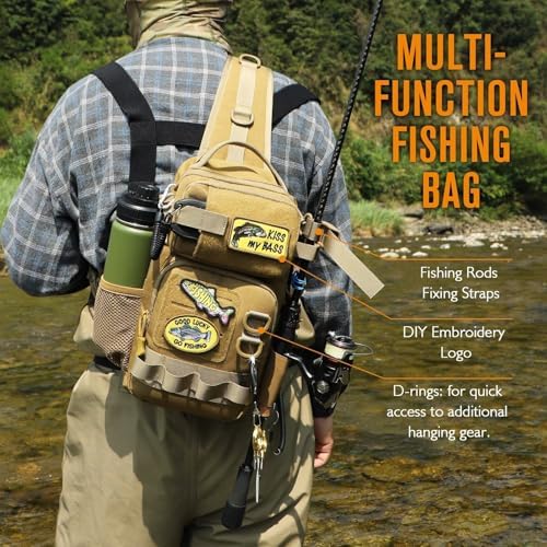 Dovesun Small Fishing Backpack with Tackle Boxes Fishing Sling Bag DIY Embroidery Patches Tackle Bag Gift for Men