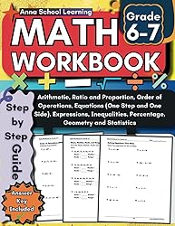 - Build a solid mathematical foundation with the Math Workbook Grade 6-7. This comprehensive workbook is tailored for students transitioning between grades 6 and 7, offering a thorough review and reinforcement of key concepts in arithmetic, pre-algebra, ratio, proportion, percentage, geometry, and statistics. Perfect for classroom support, homeschooling, or additional practice at home, this workbook ensures continuous learning and skill development.Key Features:Extensive Topic Coverage: Covers a range of essential math skills including arithmetic, pre-algebra, ratio, proportion, percentage, geometry, and statistics. Each section is meticulously designed to build understanding and proficiency.Skill-Building Opportunities: Ample practice problems reinforce concepts and enhance mathematical fluency. Each worksheet is structured to progressively challenge students and promote mastery.Clear Instructions and Examples: Easy-to-follow instructions and examples ensure students can work independently and grasp new concepts effectively.Answer Key Included: Includes a complete answer key for quick self-assessment and review, allowing students to monitor their progress and identify areas for improvement.Grade-Appropriate Content: Specifically designed for students in grades 6-7, ensuring alignment with curriculum standards and educational objectives.The Math Workbook Grade 6-7 goes beyond traditional practice exercises; it fosters a deeper understanding of fundamental math concepts crucial for academic success. Whether used during the school year or for additional practice at home, this workbook supports ongoing learning and prepares students for future math challenges.