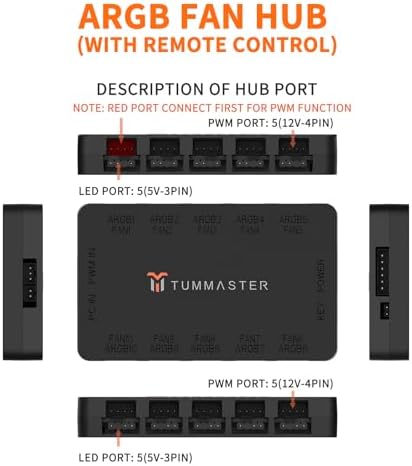 ARGB Fan HUB 5V-3Pin LED Hub 4 Pin PWM Fan Controller RF Remote (J-10 (Black))