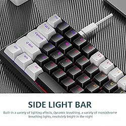 - Wired 60% Mechanical Gaming Keyboard RGB Backlit Compact 61 Keys Mini Keyboard with Blue Switches for Windows PCSpecification:Product Name: Mechanical Gaming KeyboardProduct size: 30x11x3.6cm/11.81x4.33x1.42inchProduct colour: WhitePackage size: 33.5x15.7x4.5cm/13.19x6.18x1.77inchGross Weight:1.62lbs/738.5g Package Include:1x Mechanical Gaming Keyboard1x Specification1x Type-c Cable