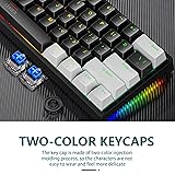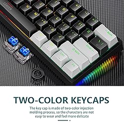 【Various RGB Lighting Modes】This wired keyboard has 12 RGB backlight modes and 8 solid color backlights that add more F-UN to your gaming or provide comfortable ambient light for typing. The brightness and move speed of lighting are Adju-stable. 【Mini 60 Percent Design】This 60% gaming keyboard is in a compact 61-key layout with separate Arr-ow keys and needed functional F-keys, to balance between gaming and typing while saving more spaces for mouse movement and desktop. 【Blue Switches & Full Anti-ghosting】the classic blue switches provide tactile and audible feedback, deliver accurate and responsive key commands. All keys are fully conflict-free, the perfect choice for INTE-NSE gam-eplay and fast typing. All key can be reassigned and macros can be created for effortless operation. 【Double Shot Keycaps & Detachable USB Type-C Cable】 The keycaps are designed with durable material that is resistant to wear, fade and blur. A detachable USB-C cable makes this ultra-compact keyboard portable and carries it easily anywhere 【Wide Compatibility】 The computer keyboard is plug & play, no need driver. Universally works with Windows 7 / Windows 10 / Windows XP, etc.