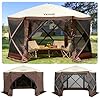 VEVOR Pop Up Gazebo Tent, Pop-Up Screen Tent 6 Sided Canopy Sun Shelter with 6 Removable Privacy Wind Cloths & Mesh Windows, 12.5x12.5FT Quick Set Screen Tent with Mosquito Netting, Brown