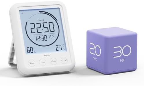 - Enhanced Time Management: Includes both the mooas Cube Timer (Violet) with pre-set time options of 5, 10, 20, and 30 minutes, and the mooas Visual Timer Clock for precise countdowns and time productivity..