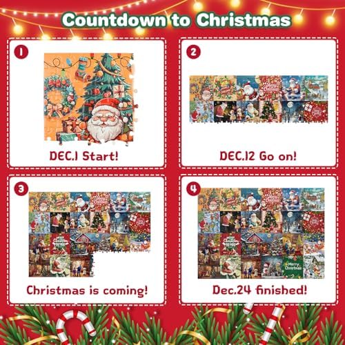 Puzzle Advent Calendar 2024, Jigsaw Puzzle 24 Days Christmas Countdown Advent Calendar for Adults, 1008 Pieces Family Game Holiday Santa's Puzzle 19.7 inch x 27.6 inch