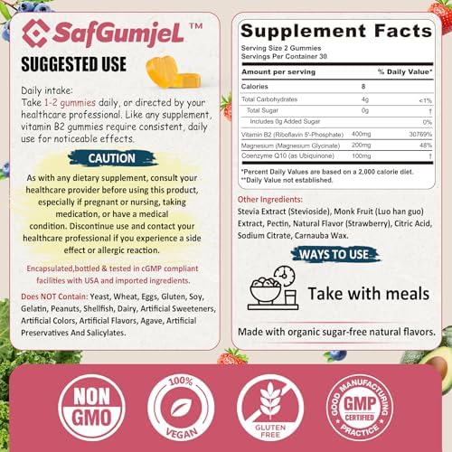 - {Enhanced Energy Support & Healthy Nervous System} You will feel more energy! Riboflavin-5-phosphate is involved in energy metabolism, particularly in the production of ATP (adenosine triphosphate), the body's primary energy molecule, to enhance human vitality. Our Vitamin B2 400 mg gummies combined with magnesium glycinate 200mg provide essential nutrients for strss reduction, calmness, and md relief. CoQ10 100mg is a natural coenzyme that can activate human cells and cell energy nutrients.