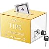 Vesici Acrylic Tips Jar Donation Tip Bucket 6 x 4 x 5 Inch Collection Money Storage Container Suggestion Box Raffle Cash Box for Bartender Bars Restaurants Musicians Driver Coin (Gold)
