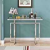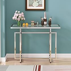 Modern Design: This silver entryway table embodies sophistication and a breath of contemporary charm. Its streamlined contour and refined marriage of silver metal forge a captivating masterpiece for your foyer. Seamlessly fusing modern design with enduring class, this glass console table serves as an impeccable addition to any space Superior Quality: Boasting a tempered glass surface, this console table for entryway can use is both stylish and safe. The overall rectangular frame exudes modern appeal while offering essential support. The adjustable feet pads further enhances its sturdiness and stability. Overall measurements: 43.31 x 13.78 x 31.5 in Decorative Companion: Designed with versatility at its core, this modern entry table is perfect for showcasing cherished keepsakes, artwork, or daily essentials like mail and purses. Its open-concept design fosters a sense of lightness and promotes effortless reachability, making it an ideal addition to any living space seeking to blend style with functionality Multi-scenarios Use: This glass entryway table is an elegant masterpiece that will add color to any environment. It can be placed not only in your living room or foyer, but also in your office and more. Additionally, it will make a charming overture for displaying art deco pieces and enhance the ambiance with its minimalist charm Easy Assembly: Detailed setup instructions, accompanied by all essential hardware, promote swift and hassle-free installation of the silver console table. If you have any questions, we will be glad to help you
