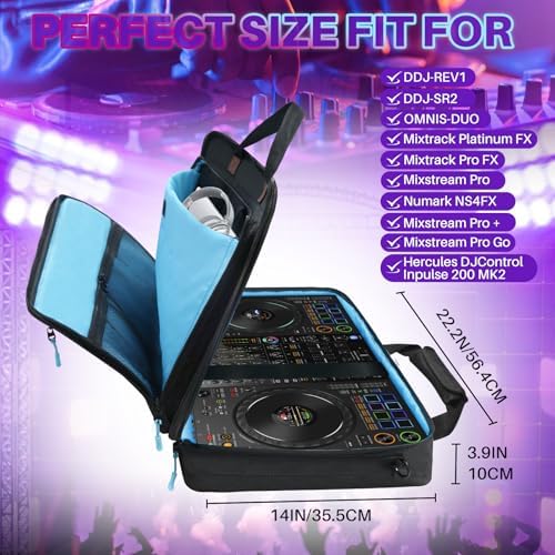 - 【Perfect Fit for Popular DJ Controllers】This DJ controller carrying case is designed to fit a wide range of popular DJ gear, including Pioneer DDJ RR, Pioneer DDJ SR2, Pioneer DDJ SR, Denon MC4000, NUMARK NVII, NUMARK Mixtrack Pro 3, NUMARK NV, and NUMARK Mixtrack Platinum controllers. External dim: 22.8x4x14.6 inches, internal dim: 22.2x3.4x14 inches. Please ensure compatibility by checking the size of your DJ controller before purchase