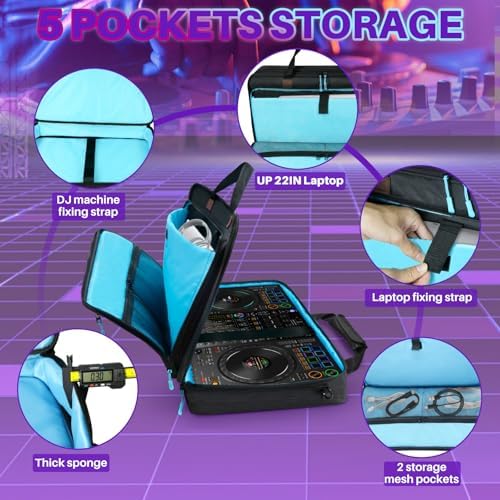 - 【Convenient Storage and Organization】The DJ shoulder bag features 2 internal adjustable safety straps, which keep your DJ controller firmly in place during transport, preventing shaking. The front pocket has ample space for a laptop, while the two zipped mesh pockets provide storage for cables, headphones, and other accessories. The back pocket is perfect for your phone and small essentials, ensuring everything you need is organized and easy to access
