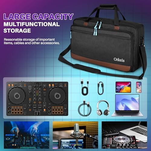 ORKELS DJ Controller Case for Pioneer SR/SR2/RR/DDJ-REV1/Denon MC4000/Numark NVII/Mixtrack Pro 3 & NV - Travel Bag with Strap for Controller, Laptop, Accessories, 22.8''x4''x14.6''