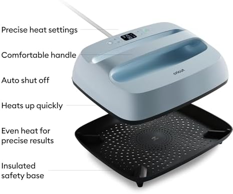 • ADJUSTABLE TIME & TEMPERATURE — Control temperature up to 400 ºF (205 ºC) and set the timer manually or use the Cricut Heat app to send precise settings. Apply gentle pressure and release when you hear the beep.