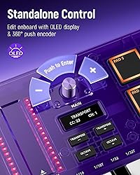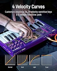 ✔️[Unlock Your Creativity] Experience the expressive touch of 25 keys spanning 10 octaves, and 8 vibrant backlit beat pads for flexible instrument control. Elevate your music control with the added allure of 8 rotary knobs, 6 transport buttons, and pitch bend, modulation touch strips, offering endless creative possibilities at your fingertips ✔️[Chic Durable Midi Keyboard] The semi-transparent casing, adorned with UV coating, radiates a high-end allure while steadfastly repelling scratches and color fading, ensuring everlasting sophistication ✔️[Seamless Control] Clear OLED display paired with a 360° endless rotary knob delivers immediate parameter feedback and grants instant editing prowess, making music composition effortlessly immersive ✔️[Connected Excellence] Immerse yourself in a world of possibilities with USB-C data connection, midi out, sustain jack, and Synido's dedicated control software, ensuring intuitive parameter management in a visualized, user-friendly interface for an unrivaled musical journey! ✔️[Effortless Mobility] Compact yet powerful, complete with a tailor-made Synido shoulder bag for seamless portability—your all-inclusive package is ready to kickstart your musical adventure!