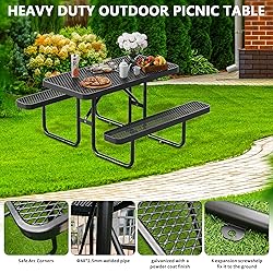 ❤【Commercial Grade Durability】: This outdoor picnic table with benches is made of industrial strength steel with a powder-coated steel frame, suitable for all-weather and waterproof outdoor surfaces, ensuring that your patio garden bench can be used for many years. ❤【Heavy Duty Picnic Table】: This rectangular steel commercial metal picnic table is an ideal choice for any space. The metal mesh design reduces dirt and moisture accumulation and keeps humidity in on rainy or snowy days. Can be used for outdoor patio picnics, barbecue tables, parks, gardens, shopping malls. ❤【Spacious Picnic Table Set】:4FT tabletop (L) 48*(W) 23.6*(H) 30inch, bench (L) 48*(W) 10*(H) 17.3inch; 6FT tabletop (L) 72*(W) 30*(H) 30inch, bench (L) 72*(W) 10*(H) 18inch, our picnic table can accommodate a variety of food and tableware needed for a picnic. The bench is long enough to accommodate 3-6 people at the same time without crowding. ❤【Waterproof and Fade Proof】: The commercial picnic table is made of steel with high performance of waterproof and fade-resistant. You can put it outdoors in all kinds of weather, including scorching sun, heavy snow and strong wind. ❤【Easy Assembly】: Our outdoor picnic table is easy to assemble, and the installation process is minimal. Our metal outdoor dining table consists of two parts: the dining table and the bench. You only need to follow the instructions to easily complete the installation. 2 people can complete the installation in 15 minutes.