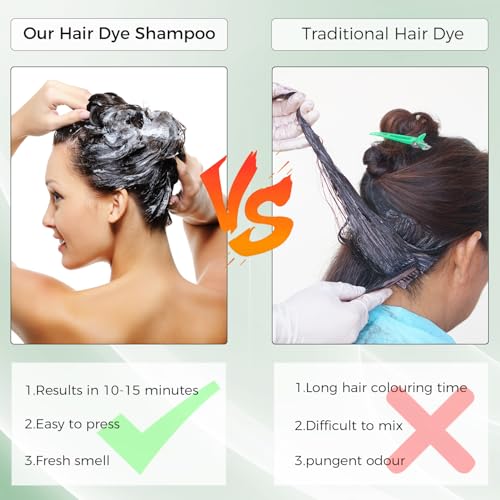 • [EASY TO USE AND TIME SAVING] Our hair dye shampoo doesn't require traditional hair colour tools, just apply it as you would normal shampoo, saving time and effort,and has a 3-in-1 function