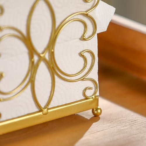 - 【Unique Napkin Holder】Gold paper napkin holder design features a particular-inspired particular, adopted modern lines paired with an attractive pattern of scrolls. The gold color of the napkin holder is very elegant, makes a accent piece for displaying your beautiful napkins, make your guests feel special. Napkin holder design complements any dining table setting.
