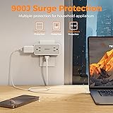 Multi Plug Outlet Splitter, TESSAN Surge Protector 4 Outlets Extender with 3 USB Ports (2 USB C), 3 Sided Multiple Plug Expander 900J, Home Office Hotel Dorm Room Essential, Grey