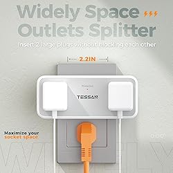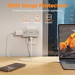 7 in 1 Multi Outlet : This plug extender can turn 1 socket into 4 AC outlets and 3 USB ports, accept the standard N American 2 or 3 prong flat pin plug, and can charge 7 devices simultaneously; You can use it in any indoor place such as home, office and dorm room 2 USB C Wall Charging: The USB A port features 2.4A, USB C port features 3A; 2 types of USB ports can detect charged devices and deliver optimal charging speed, giving you more charging options; Suitable for USB devices like Phone, Pad etc Multi Plug Outlet Widely Space Outlet: 3 side design AC outlets with 2.2in long space in between, can fit 4 big plugs at the same time without blocking, making it easier to use various equipment in any place Surge Protector Outlet: The power of wall outlet expander with 900 Joules of surge protection protects your computers, hairdryers, shavers, and other devices from surges and spikes disturbances, providing a safe and reliable charging environment Space Saving: Plug this multiple plug outlet without blocking the other below, and create a multiple port charging station in your bedroom, bathroom, living room or any area