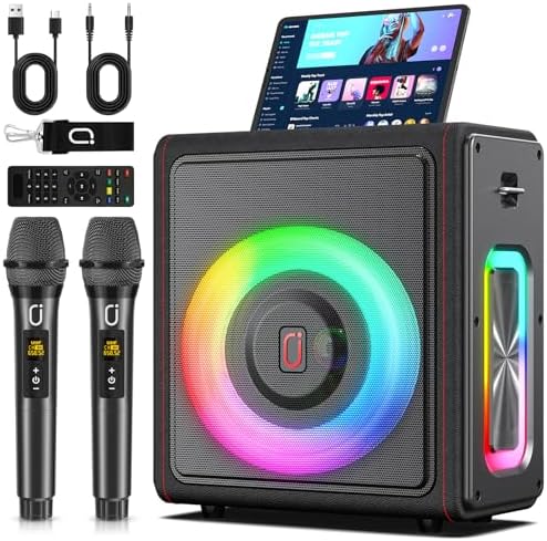 Karaoke Machine, Portable Bluetooth 5.3 Speaker with 2 Wireless Microphones for Adults, PA System with Pitch Correction & Echo Adjustment, Supports TWS/TF Card/USB/AUX/Live for Home Party
