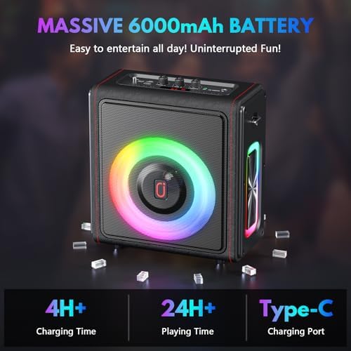 - 24-Hour Marathon Playtime: This portable wireless karaoke machine features a massive 6000mAh battery that powers non-stop singing for 24 hours. The intelligent dual-core DSP chip and dynamic circuit management reduce power consumption by 30%, while Bluetooth 5.3 maintains ultra-stable wireless connections. Perfect for weekend family gatherings and outdoor camping parties - enjoy unlimited karaoke anywhere without needing power outlets.