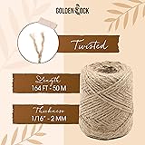 2mm - 164FT Natural Jute Twine Rope String - for Crafts Gardening Plant Accessories Gift Wrapping, Arts Packing Material Christmas Twine Bulk Wedding Decor