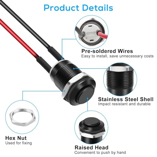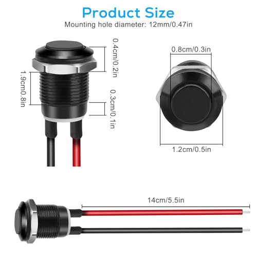 - Durable & Waterproof: 12V pushbutton switch is made of high-quality stainless steel, durable and anti-rust. IP65 waterproof rating allows use in wet or dusty environments
