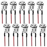 Linkstyle 10PCS 12mm Momentary Push Button Switch, Mini Round Pushbutton Switches with Pre-Wired, Waterproof, for Car Boat