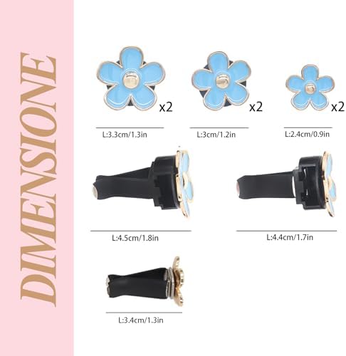 6pcs Flower Car Vent Clips,Cute Daisy Car Air Fresheners,Light Blue Daisy Car Decor for Women 3.3cm/3cm/2.5cm Girly Flower Decotaion Accessories,Refillable Clips on Diffuser