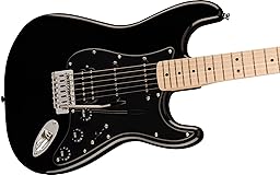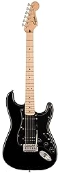 - The Squier Sonic Stratocaster HSS is ready to launch any musical adventure into warp speed, offering iconic Fender style and inspiring tone for players at any stage. This Strat sports a slim and inviting "C"-shaped neck profile and a thin, lightweight body for optimal playing comfort. The HSS pickup configuration denotes a humbucking (H) bridge pickup for a substantial, high-output tone, complimenting the single-coil (S) neck and middle pickups that chime with crystal clarity. Further details of this model include a tremolo bridge for expressive vibrato effects, sealed-gear tuning machines for smooth, accurate tuning, and durable chrome-plated hardware that is sure to catch the spotlight. SERIES: Squier Sonic, ORIENTATION: Right-Hand, COLOR: Black, COUNTRY OF ORIGIN: ID, HEADSTOCK: Stratocaster, NECK MATERIAL: Maple, NECK FINISH: Satin Urethane, NECK SHAPE: "C" Shape, NECK CONSTRUCTION: Bolt-On, FINGERBOARD RADIUS: 9.5" (241 mm), FINGERBOARD MATERIAL: Maple, BRIDGE: 6-Saddle Vintage-Style Synchronized Tremolo with Block Saddles, BRIDGE PICKUP: Ceramic Humbucker, MIDDLE PICKUP: Ceramic Single-Coil, NECK PICKUP: Ceramic Single-Coil, PICKUP CONFIGURATION: HSS, DIMENSIONS: 4.10x15.00x44.50 IN, SHIPPING WEIGHT: 10.20 LB, SCALE LENGTH: 25.5" (64.77 cm), SHIPPING LENGTH: 44.50 INSHIPPING HEIGHT: 4.10 IN, SHIPPING WIDTH: 15.00 IN. Our Austin Bazaar bundle includes everything you need to play both on stage and in the studio. We have included a strap so that you can play comfortably. Picks are included so you have extra for later. The included Austin Bazaar Guitar instructional DVD is exactly what you need to pick up some tips and tricks while learning to play.