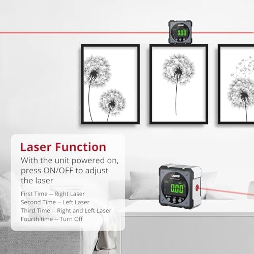 - 【Accurate Digital Angle Gauge】XUNTOP Digital Level Box Angle Finder with Electronic Laser made of aluminium with dual function inclination box and laser to meet your various needs. 4*90° measurement can be used at many angles and can be zeroed at any angle for comparison. Accuracy: +/- 0.1° at 0° and 90 ° and +/-0.2°at the rest