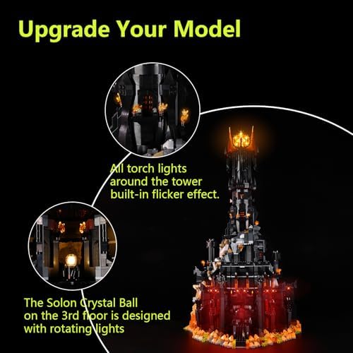 - ✨【Innovative Design】 Designed specifically for The Lord of The Rings: Barad-dûr Building Blocks Model 10333 model, The Lord of The Rings: Barad-dûr Building Blocks Model has a built-in flame effect to make your lego even more sparkling and fun.