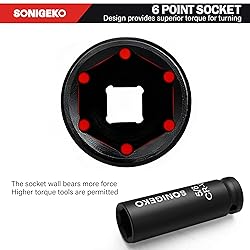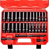 - SONIGEKO Socket Set 1/2" Drive Impact Socket Set,29-Piece 6 Point Deep Socket Set Standard SAE and Metric CR-V Steel Sockets with 3",5",10" extension bar