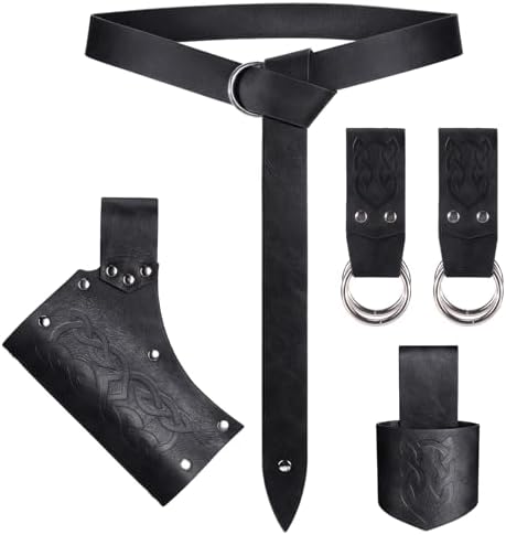 - Cool Knight Accessories: 1 renaissance belt, 1 sword frog, 1 axe holster, 2 skirt hikes, available in classic black and brown colors, allow you to dress up as a super cool medieval knight