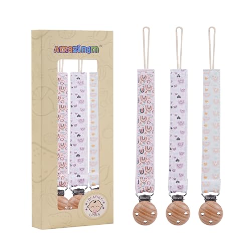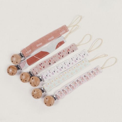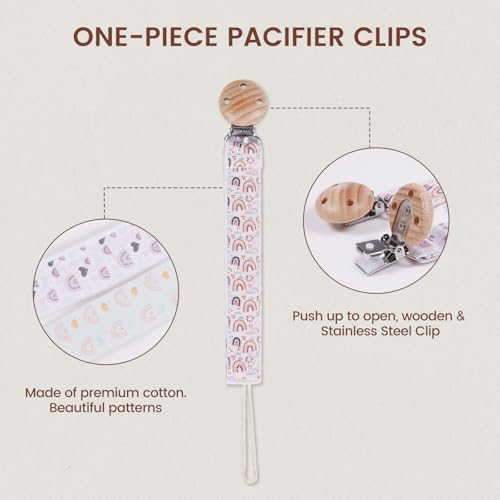 Baby Cotton Pacifier Clip Holder for Baby Boys and Girls,Wood Clip Paci Leash,Binky Clips,Newborn Essentials,Pack of 3 Gift Set. (Rainbow)