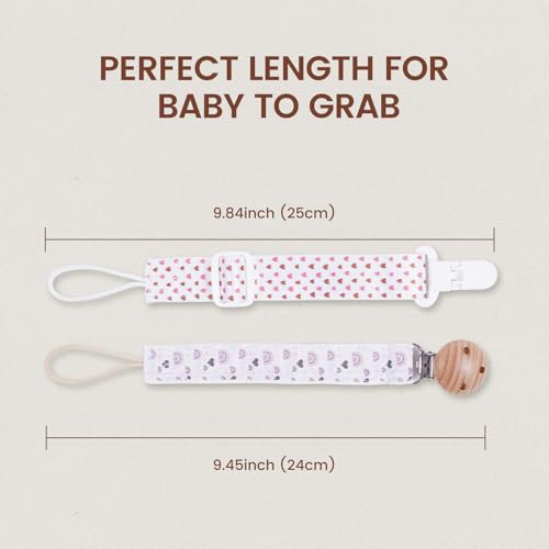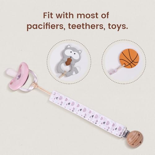 - Baby Pacifier&Teether Clip: Our pacifier chains fit most pacifiers and teether toys, whether they are 3-6 month size, 6-12 month size or 12-18 month size,strong plastic clip can be clipped on baby clothes, blankets, toys, strollers, or car seats,the suitable length design prevents the baby's pacifier and teether toys from falling to the ground.