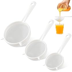 【Quality Material】These small strainer are made of high quality plastic, which can be in direct contact with food, will not rust, not easy to bend or break, lightweight and durable, ensuring long-term use. 【Fine Mesh】These plastic strainer are designed with compact and fine mesh, which can effectively filter fine particles while preventing food from sticking, fine and even, leaving no impurities, ideal for all kinds of kitchen work. 【User Friendly Design】Each plastic colander features a double ear design that allows you to place the sieve flat on a bowl or pot without lifting it for easy straining. Comfortable handle is easy to hold, and there are hanging holes to easily hang on the wall or cabinet, saving space and keeping your kitchen clean and tidy. 【Packing List】The package includes one each of 3 different sizes of mesh strainer with handle (26*13.5cm/10.2*5.3inches, 19.5*9cm/7.7*3.6inches, 14.5*6cm/5.7*2.4inches), making sure that you have the right sized tools for various tasks. 【Widely Used】The strainers fine mesh has a wide range of applications, such as filtering tea, soy milk, fruit pulp, coffee grounds, wheat flour, etc. It is widely used in homes, restaurants, cake stores, delis, etc., and is a practical filtering tool.
